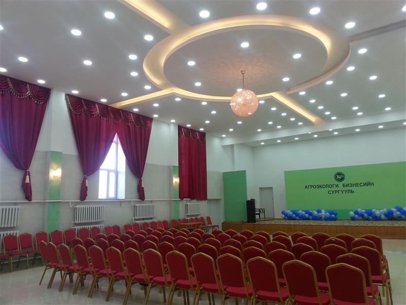 Танхим нь тайз, гэрэлтүүлэг, дууны тоног төхөөрөмжөөр бүрэн тоноглогдсон бөгөөд уралдаан тэмцээн, хурал, сургалт, эцэг эхийн уулзалт зэрэг олон төрлийн арга хэмжээг чанартай зохион байгуулах боломжтой.
